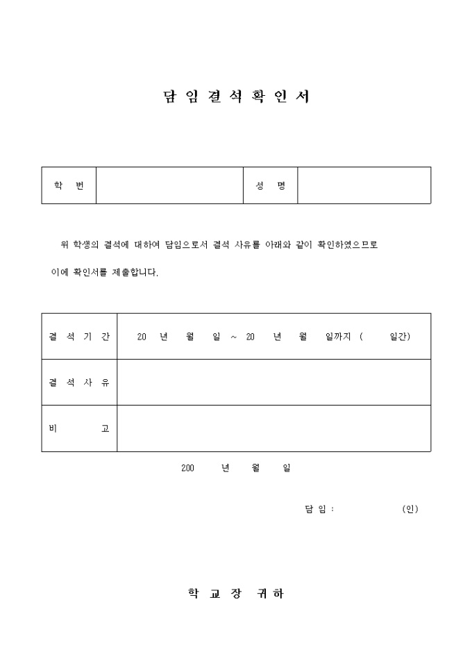 담임결석확인서