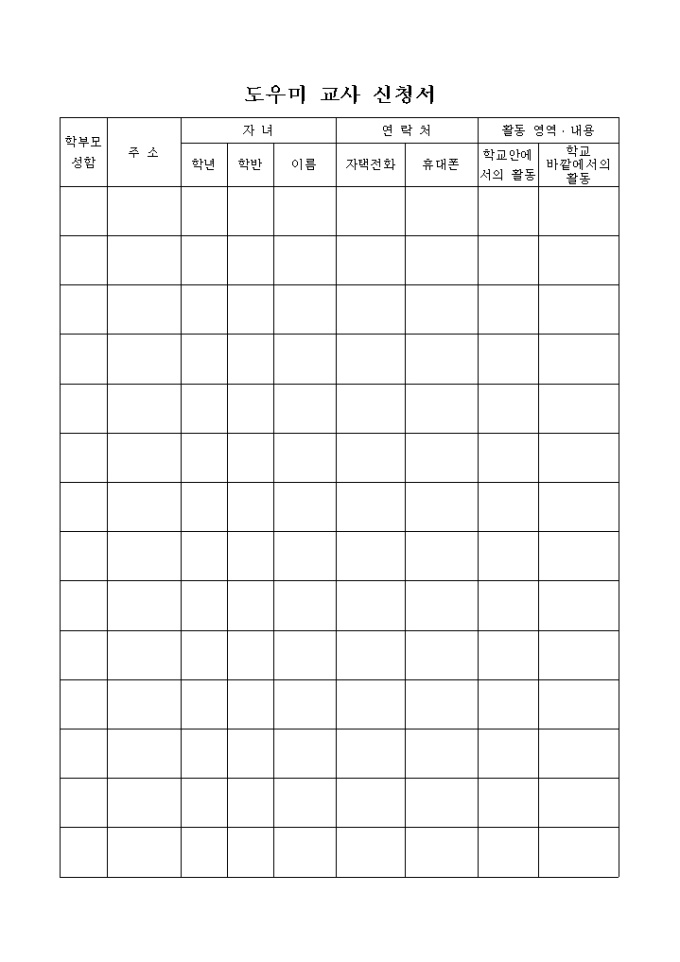 도우미교사 신청서