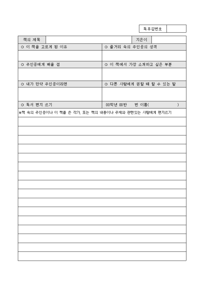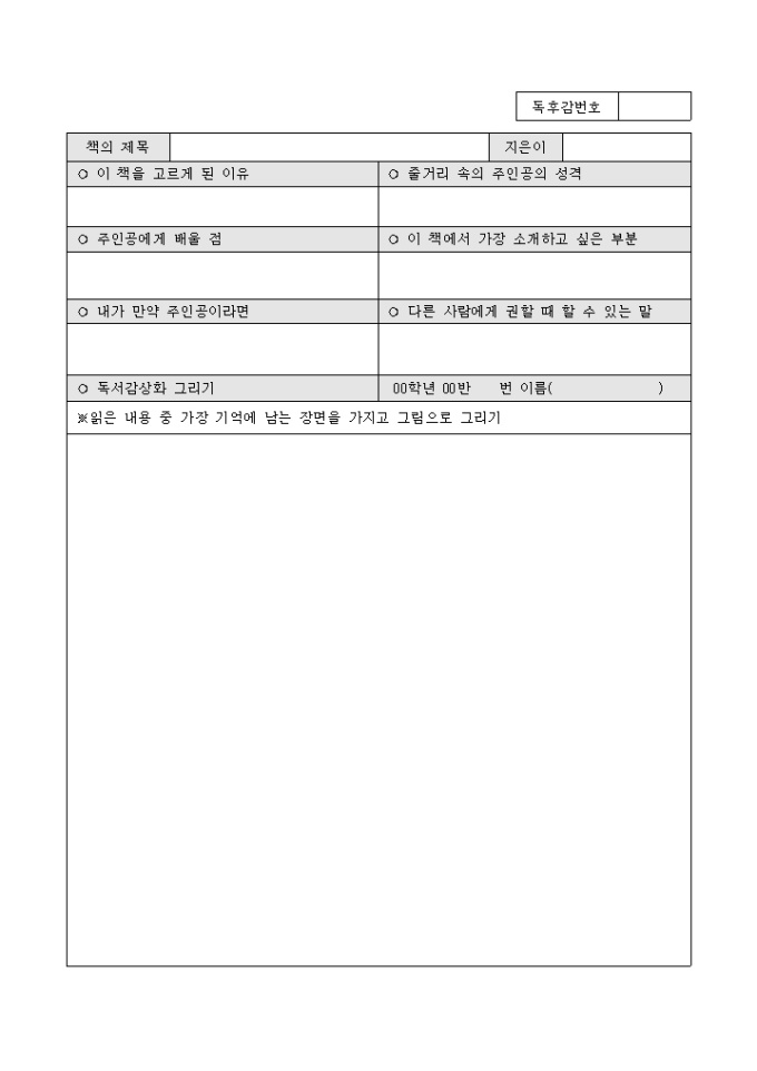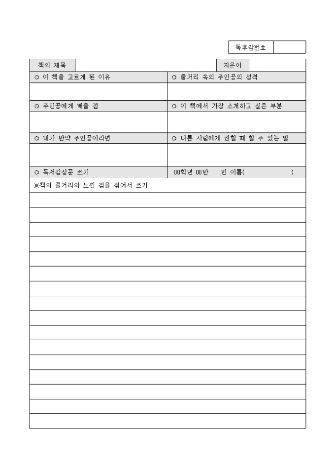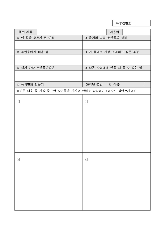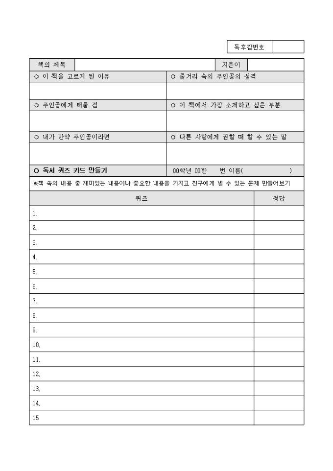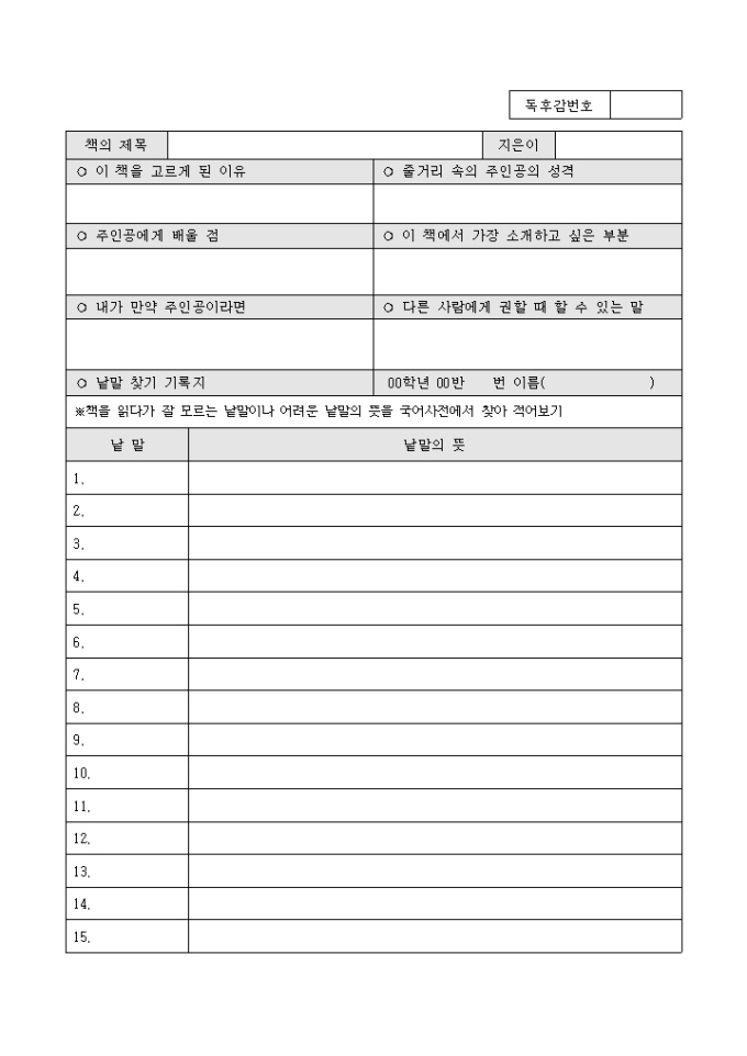 독서기록지 (나의 독서 생활)