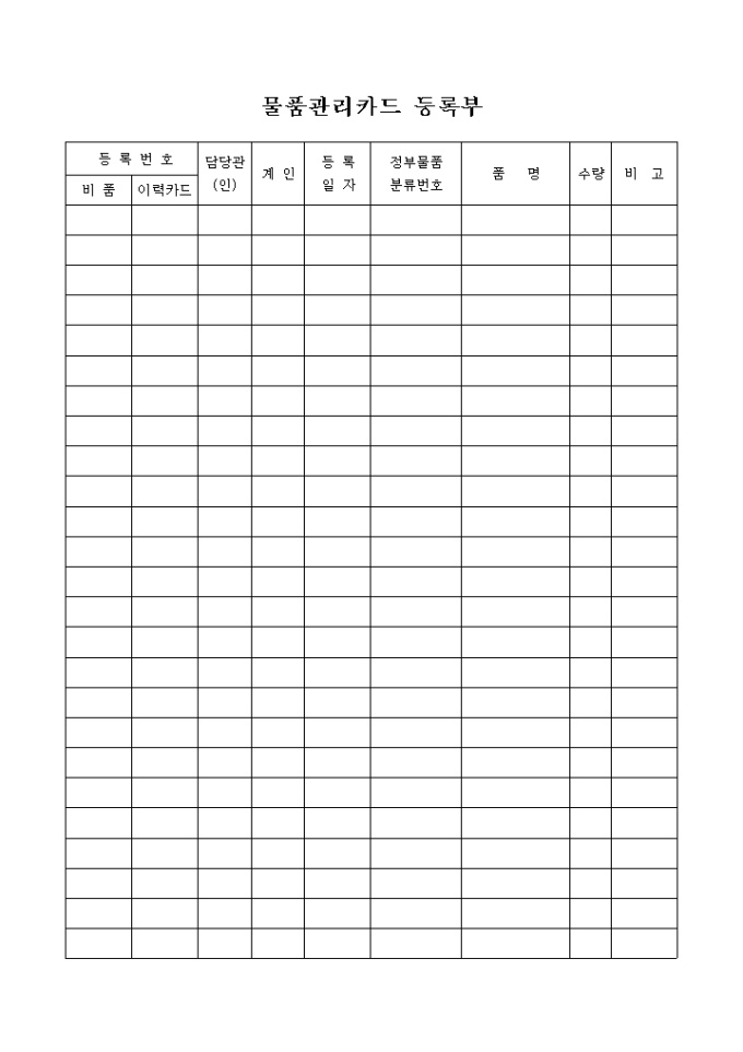 물품관리카드 등록부