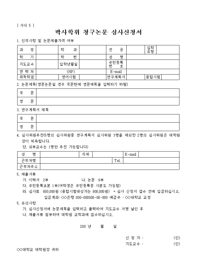 박사학위 청구논문 심사신청서