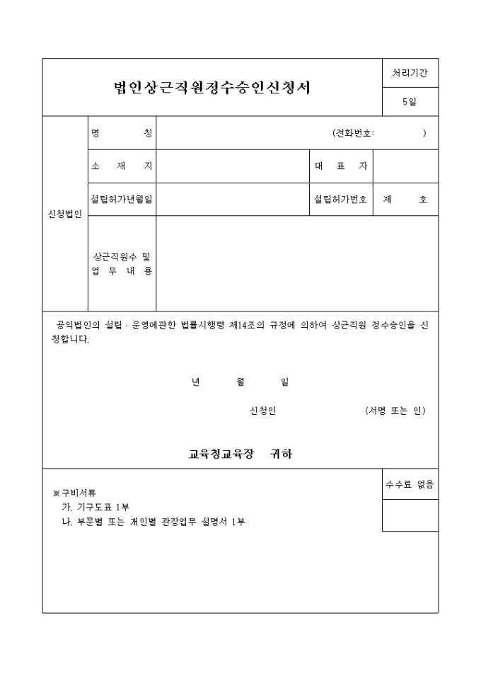9,000원/월법인 상근직원정수 승인신청서