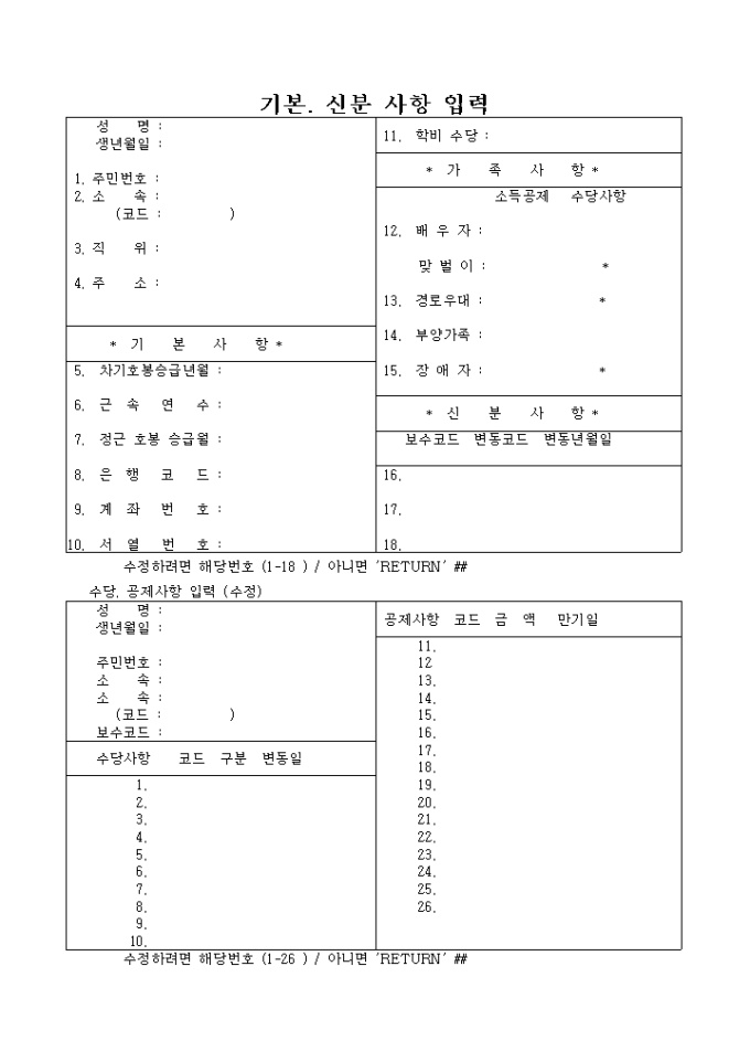 9,000원/월보수인사 자료입력(기본. 신분 사항 입력)