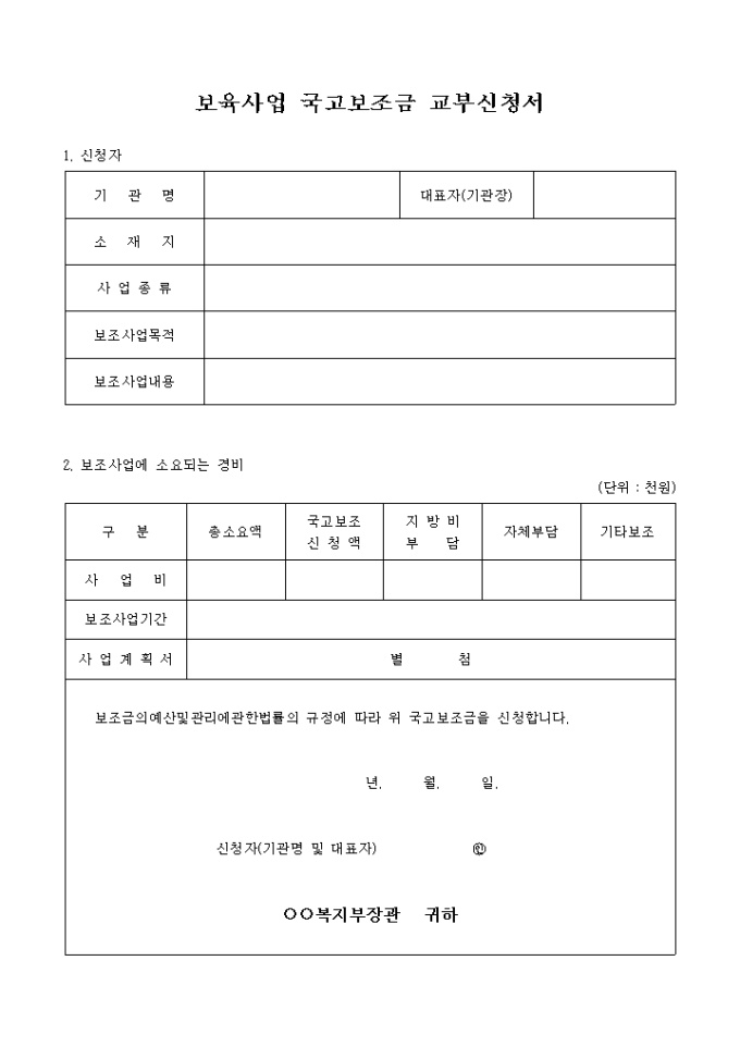 9,000원/월어린이집사업 국고보조금 교부신청서