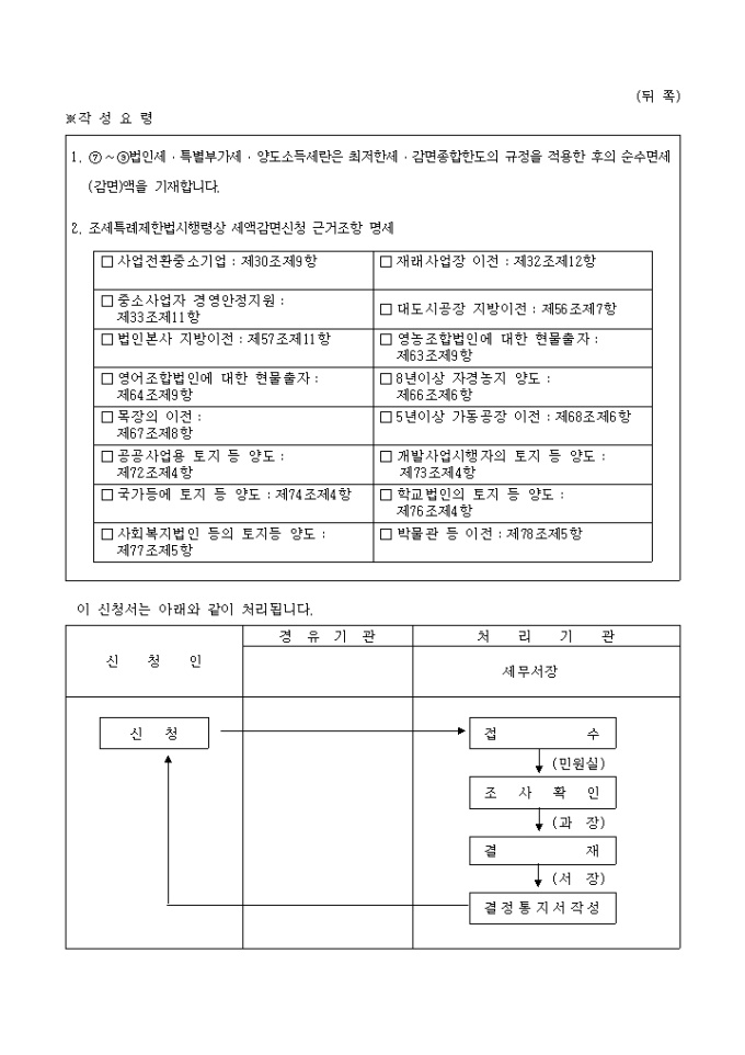 조세특례제한법시행령 제( )조제( )항의 규정에 의하여 세액감면(면제)을 신청하실때 사용하는 양식입니다.