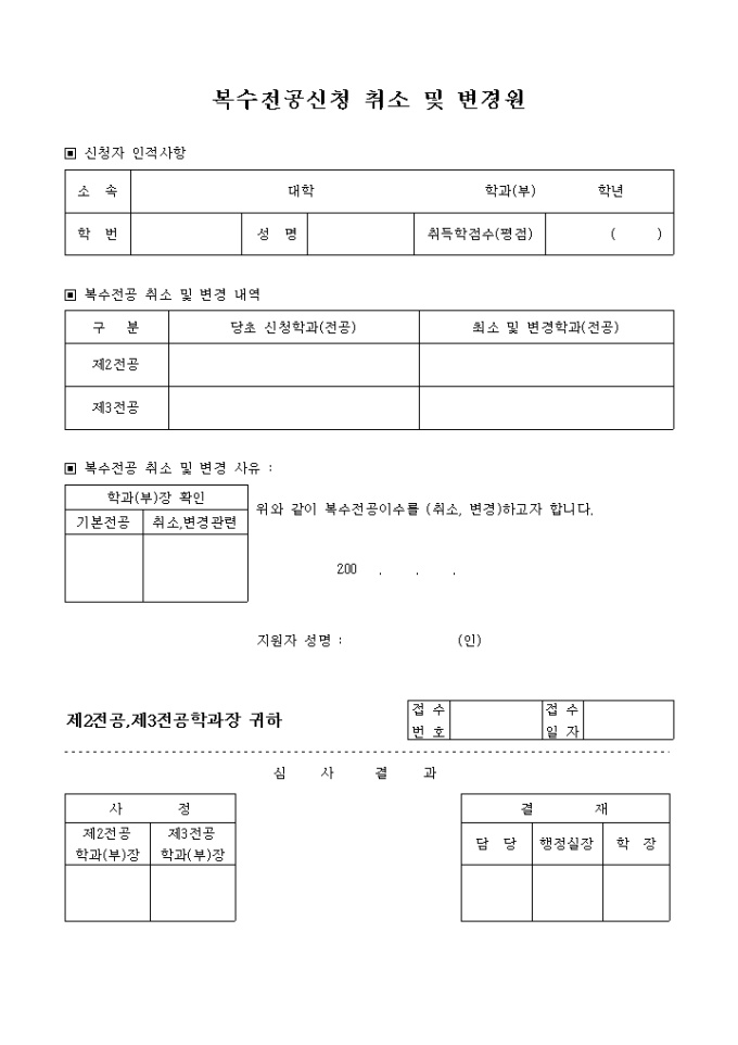 9,000원/월복수전공신청 취소 및 변경원