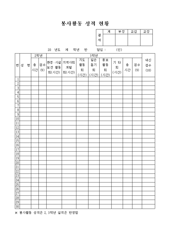 9,000원/월봉사활동 성적 현황