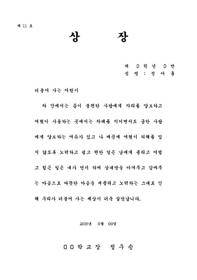 상장예문 (더불어 사는 어린이)