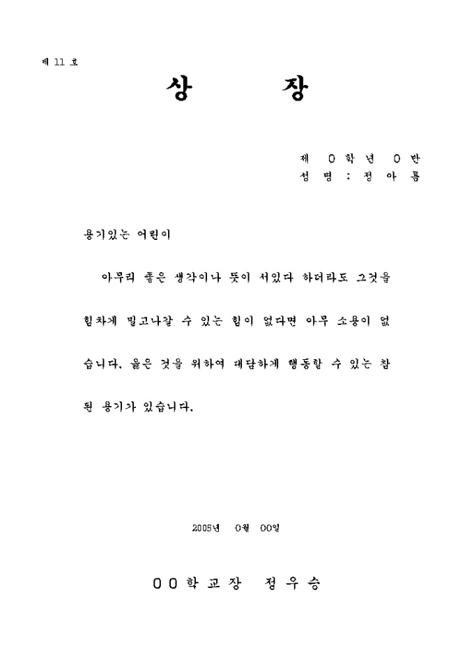 상장예문 (용기있는 어린이)