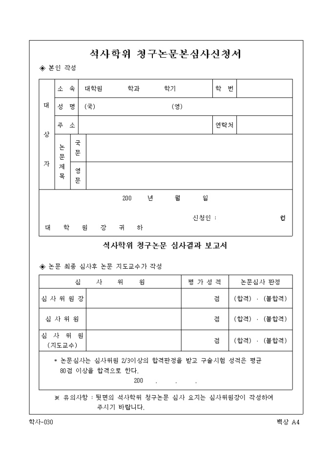 석사학위 청구논문본심사신청서 (논문요지)