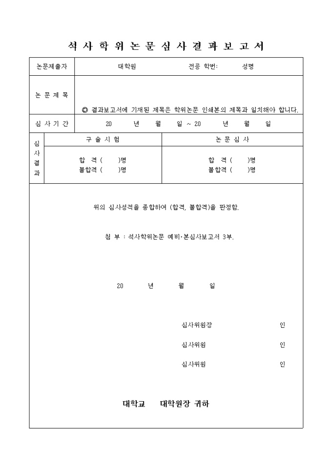 석사학위 논문심사 결과 보고서(표 형식)