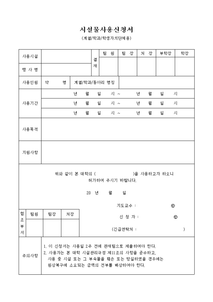 9,000원/월시설물사용 신청서(학과_학생단체)