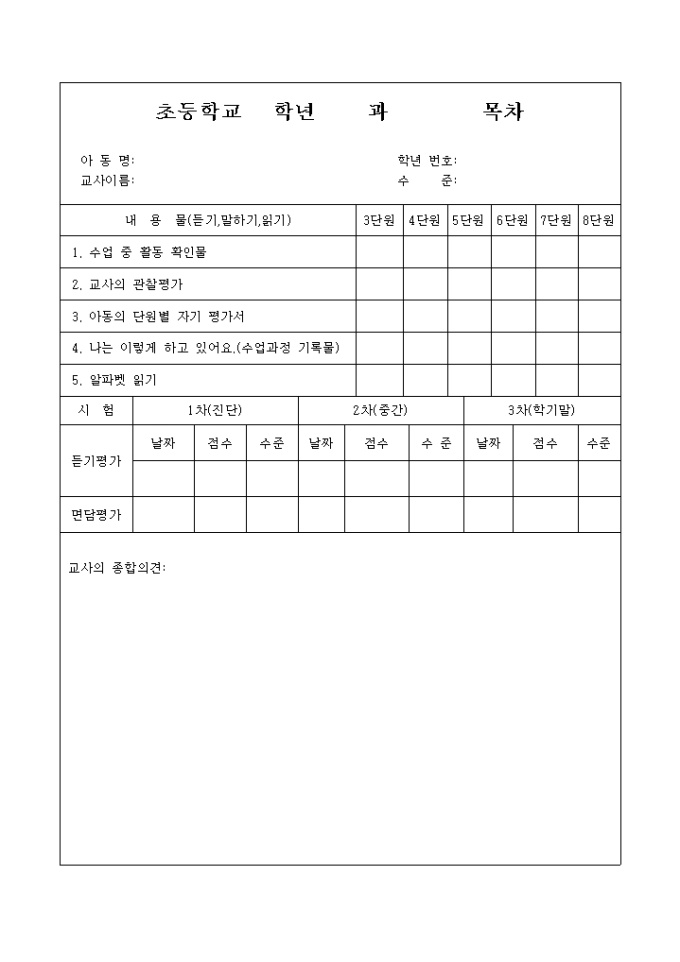 9,000원/월아동 포트폴리오 목차 및 평가 요약지