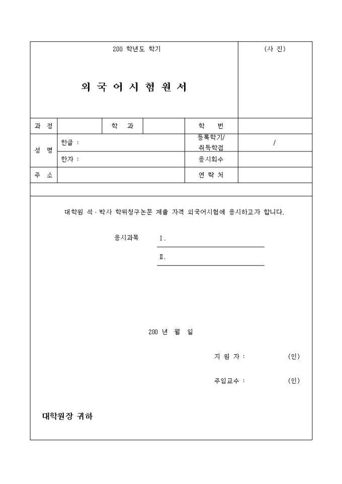 외국어시험 원서