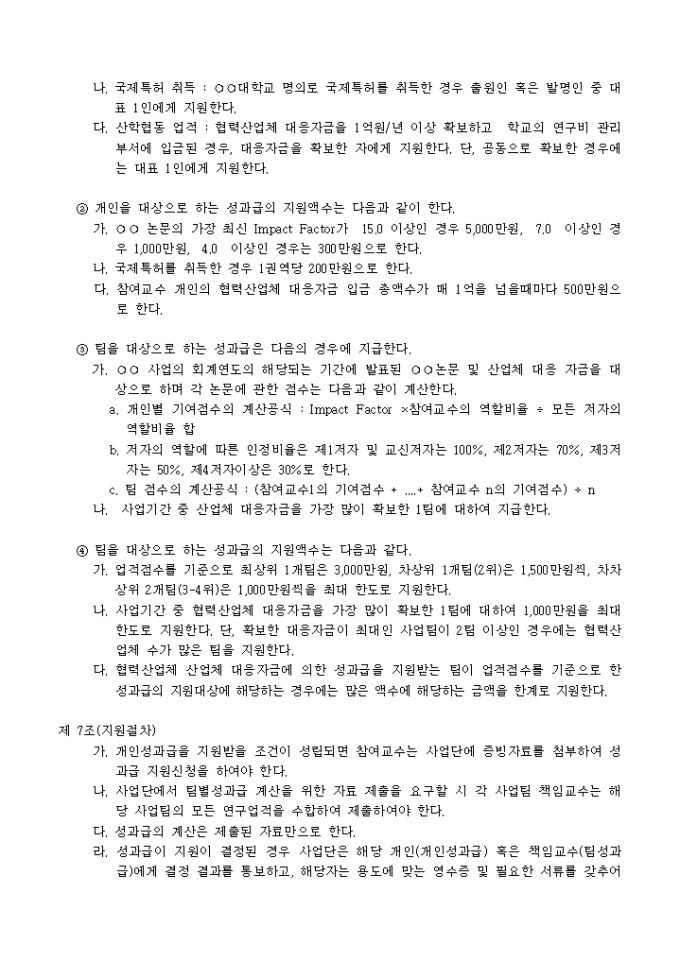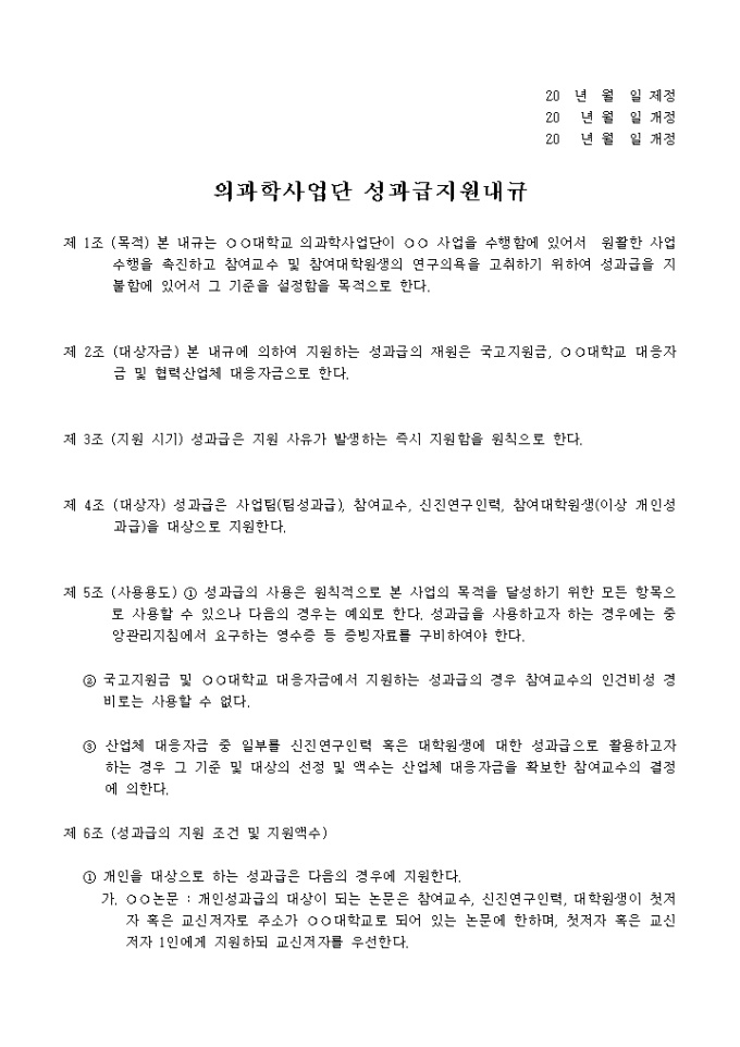 의과학사업단 성과급지원내규