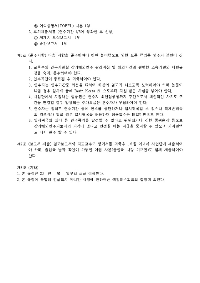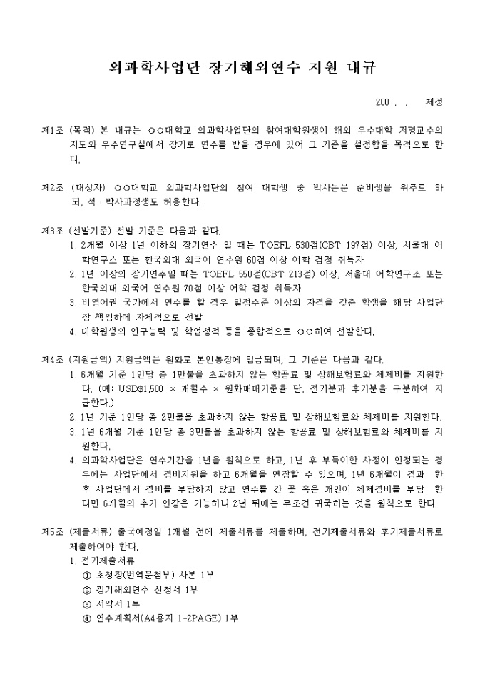 의과학사업단 장기해외연수지원내규