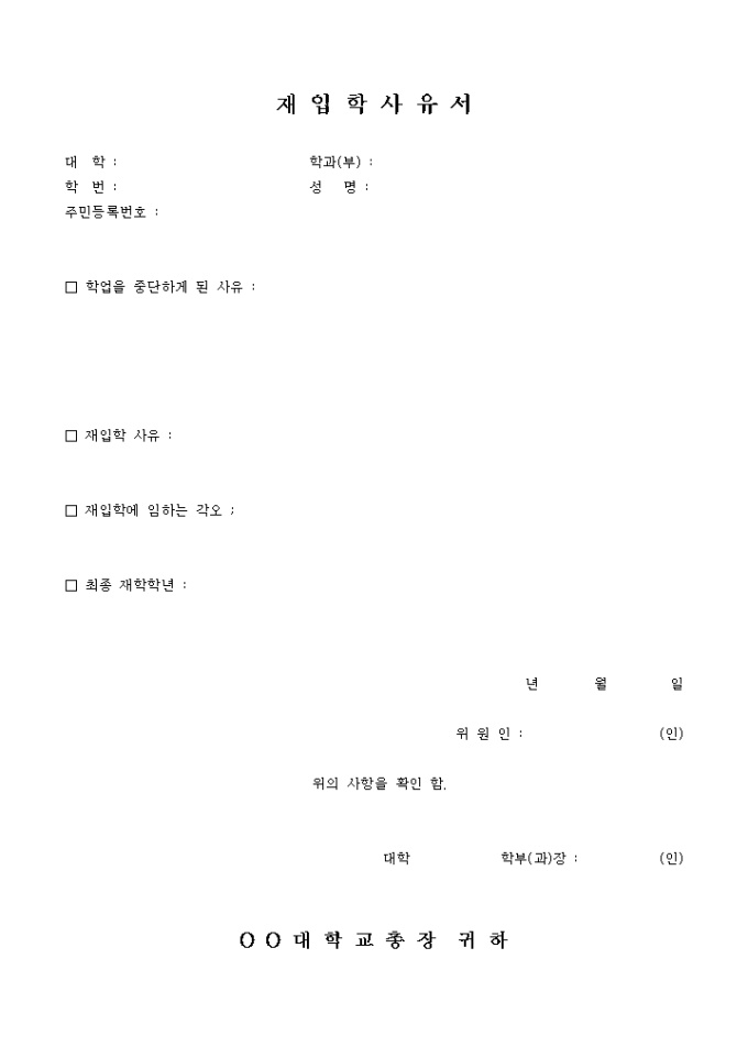 재입학 사유서