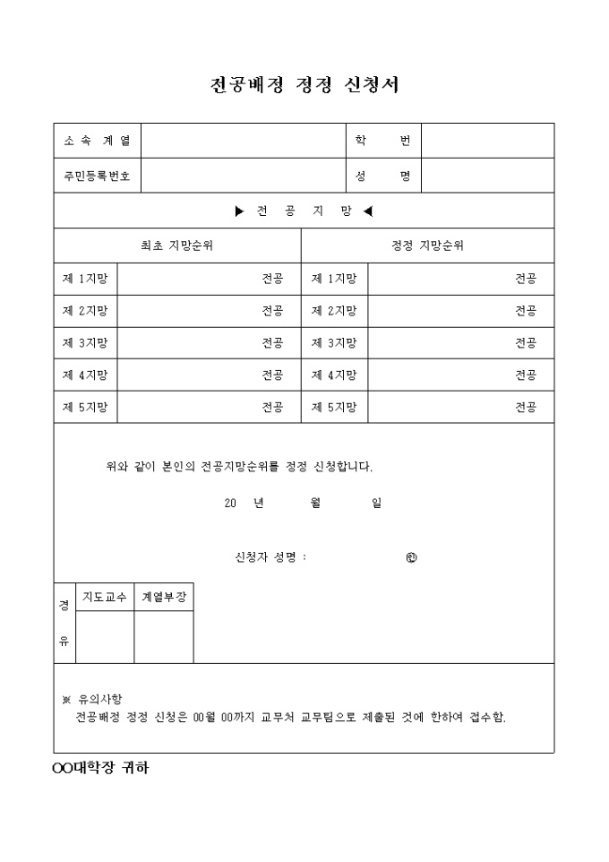 전공배정 정정신청서