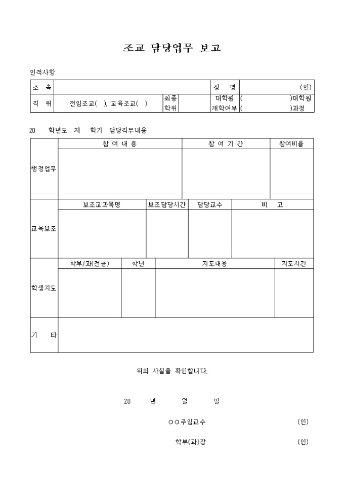 조교 담당업무 평가서