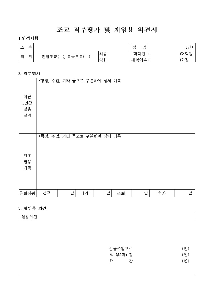 9,000원/월조교 직무평가 및 재임용 의견서