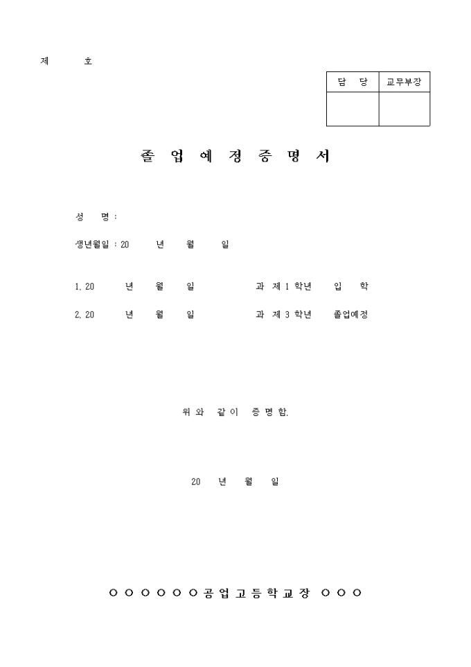 9,000원/월졸업예정 증명서