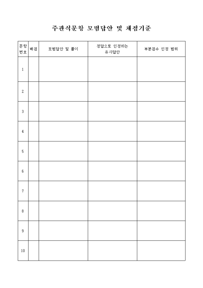 주관식문항 모범답안 및 채점기준