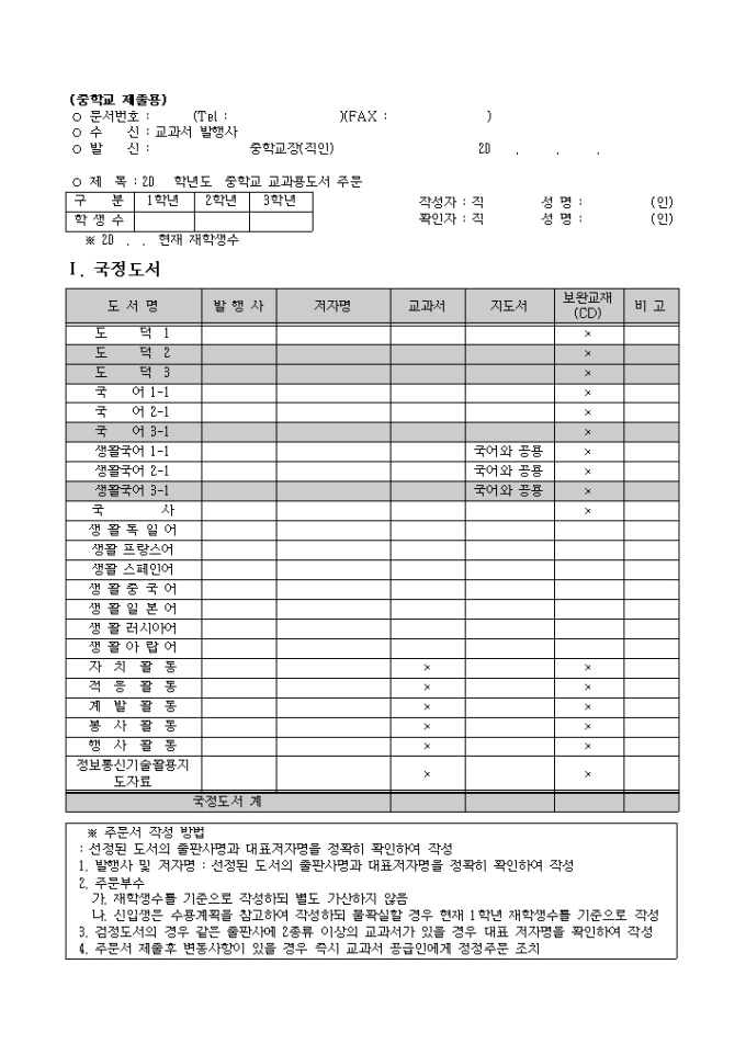 9,000원/월중학교 교과용도서 주문