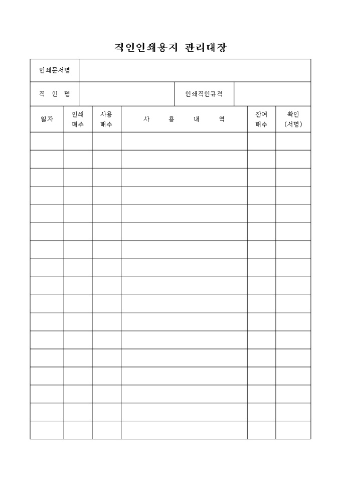 직인인쇄용지 관리대장