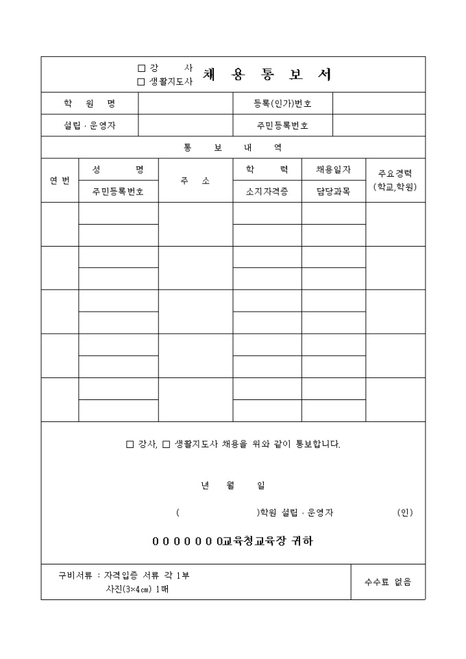9,000원/월채용통보서(강사,생활지도교사)