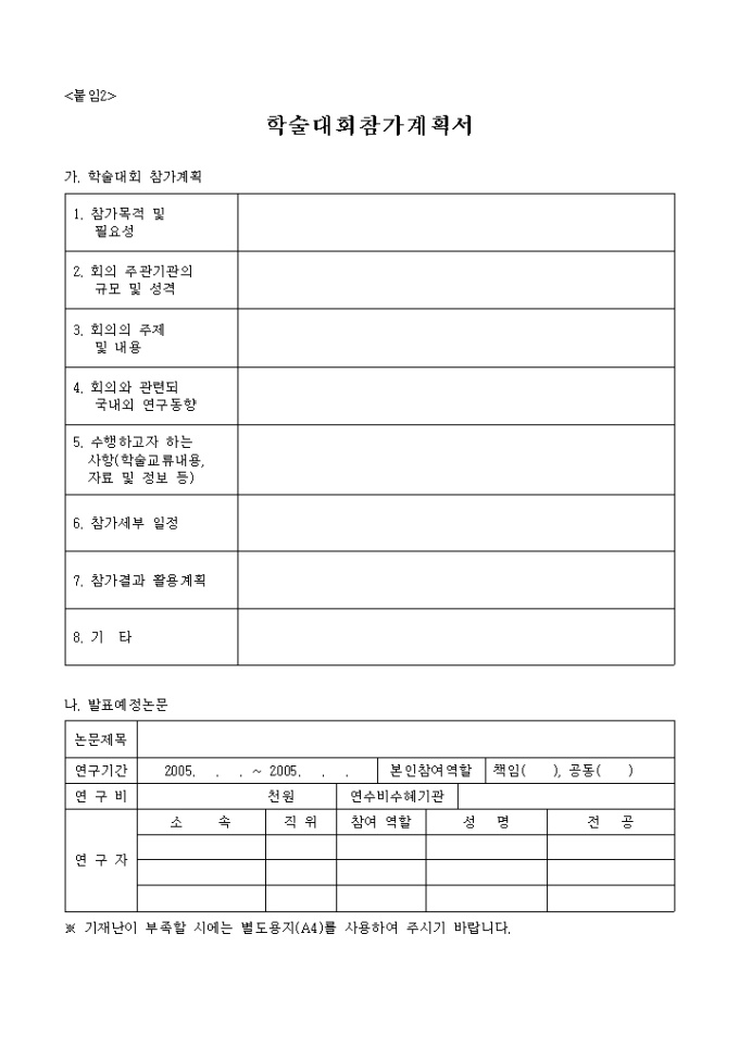 9,000원/월학술대회참가계획서