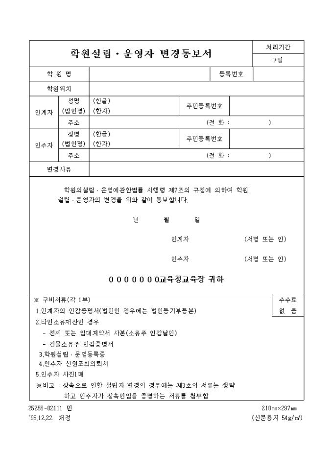 9,000원/월학원설립·운영자 변경통보서