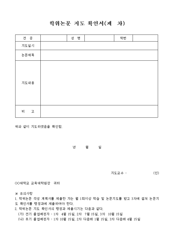 9,000원/월학위논문 지도 확인서
