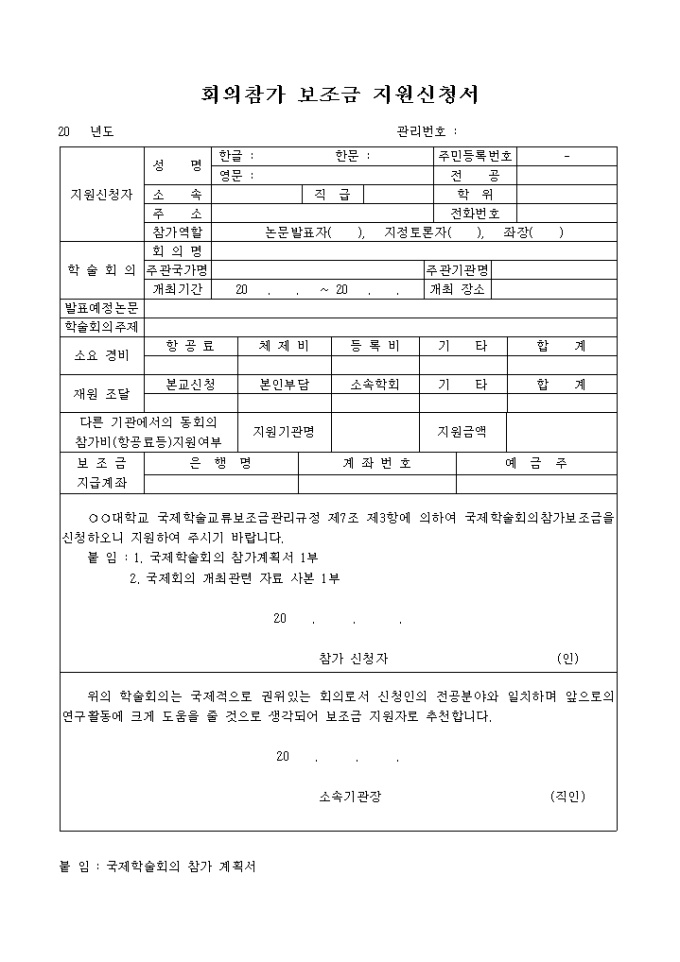 회의참가 보조금 지원신청서