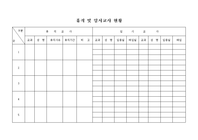 9,000원/월휴직및임시교사현황