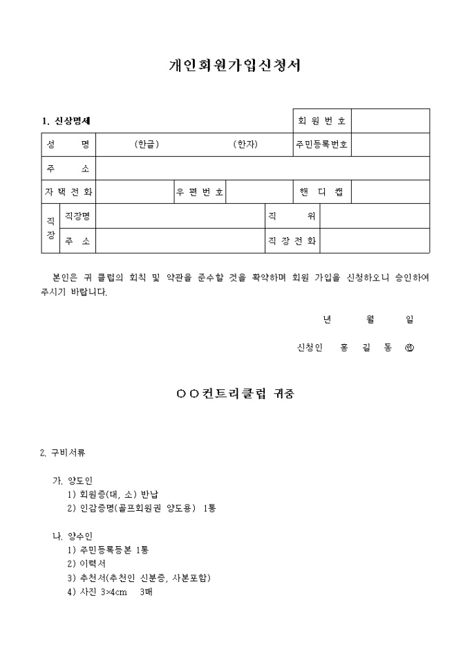 골프 가입신청서(개인)