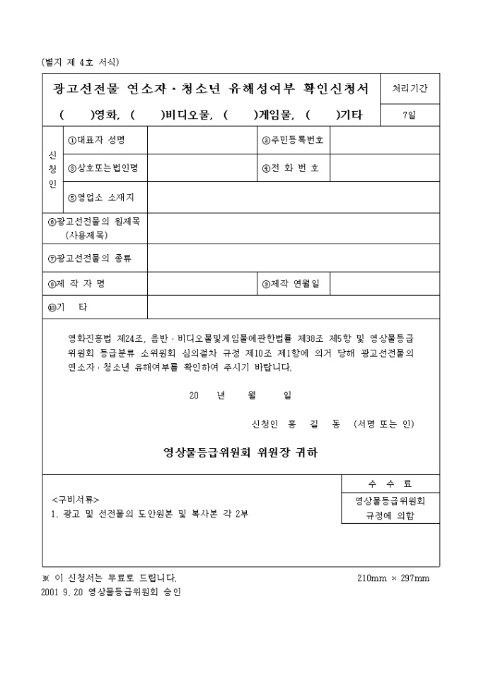 9,000원/월광고선전물 연소자·청소년 유해성여부 확인신청서