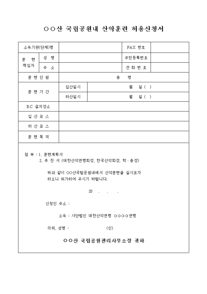 9,000원/월국립공원내 산악훈련 허용신청서
