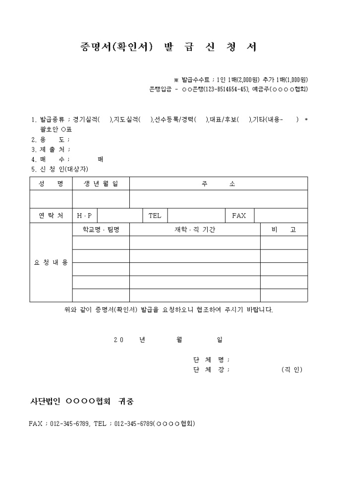 9,000원/월증명서(확인서) 발급신청서(단체)