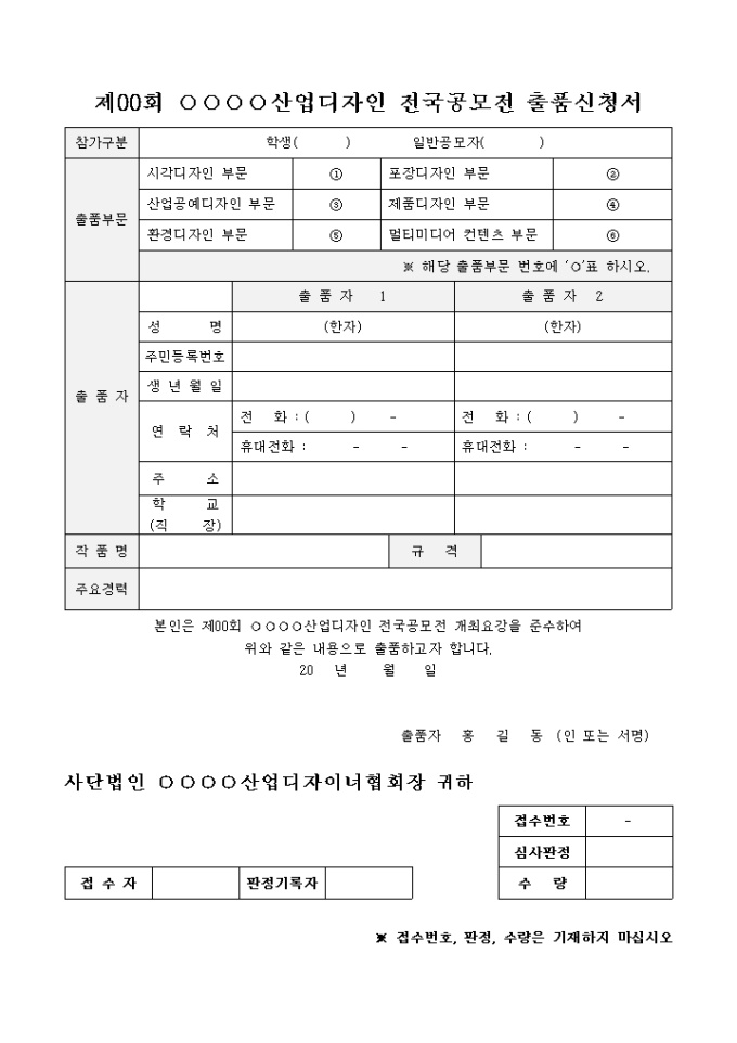 9,000원/월출품신청서 (산업디자인 전국공모전)