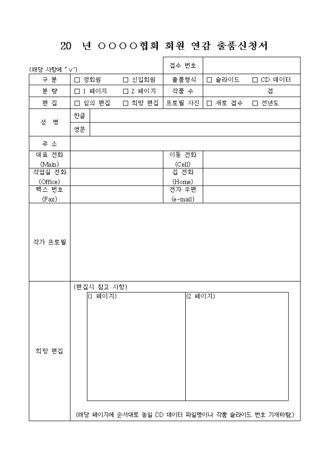 9,000원/월출품신청서 (회원 연감)