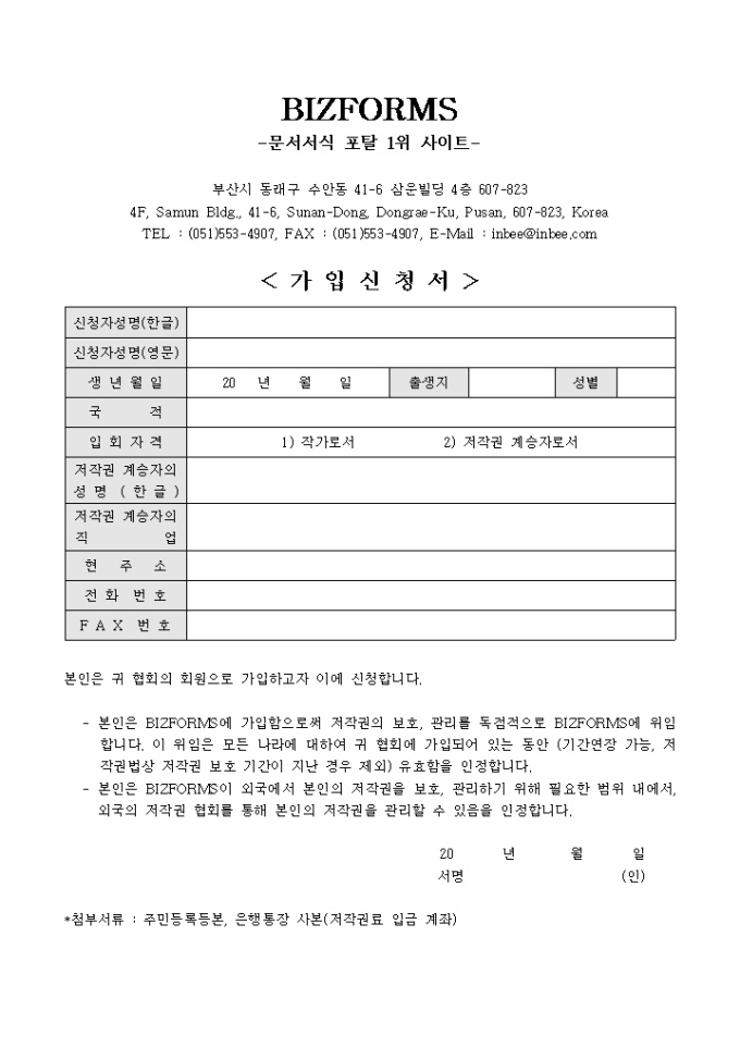 협회 가입신청서