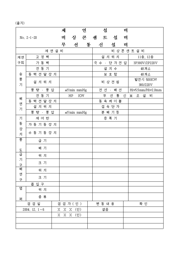 9,000원/월소방 점검일지 (제연설비, 비상콘센트설비, 무선통신설비)