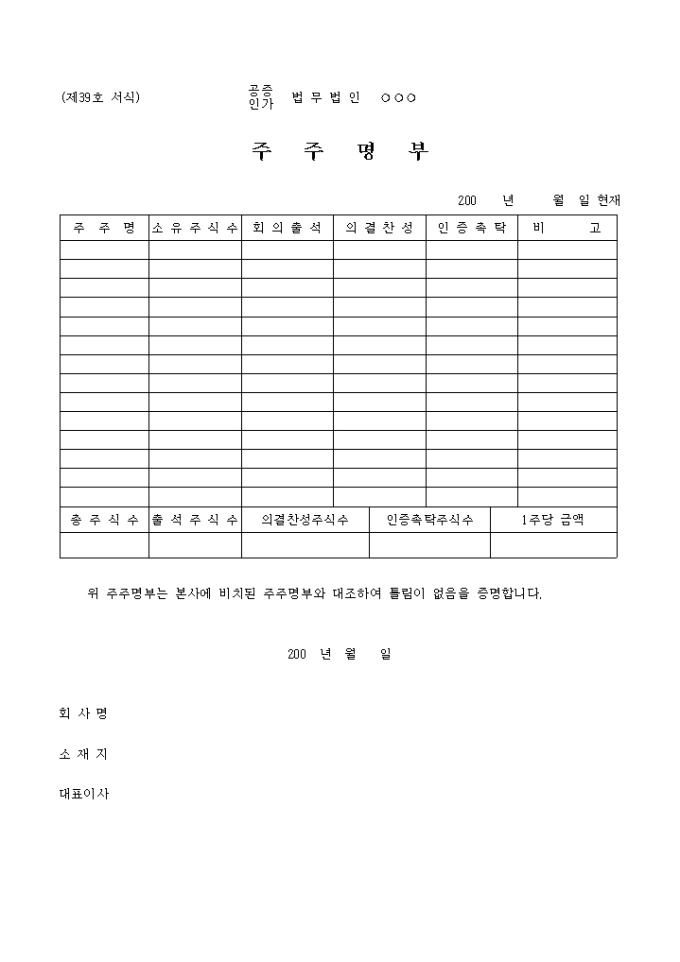 9,000원/월상업등기시 사용하는 제39호 주주명부입니다.