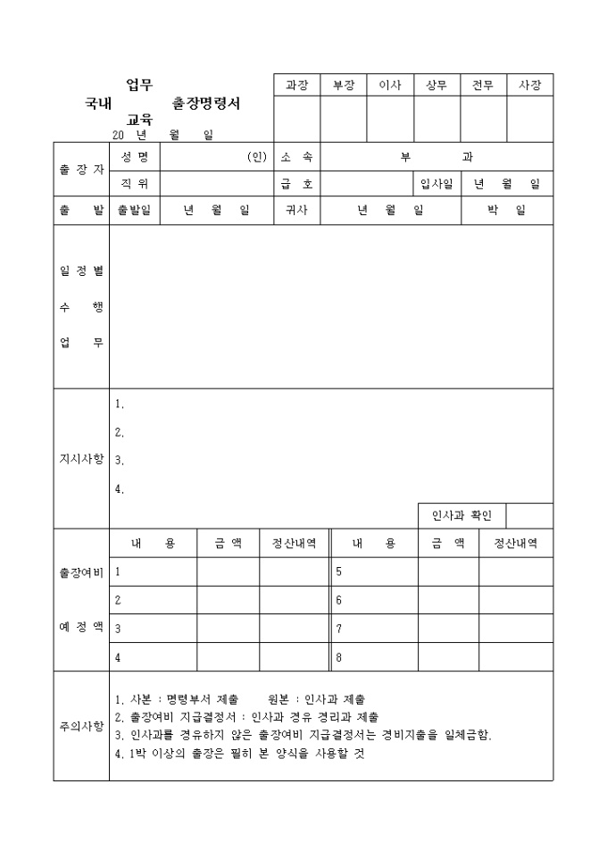 국내 업무 및 교육 출장명령서