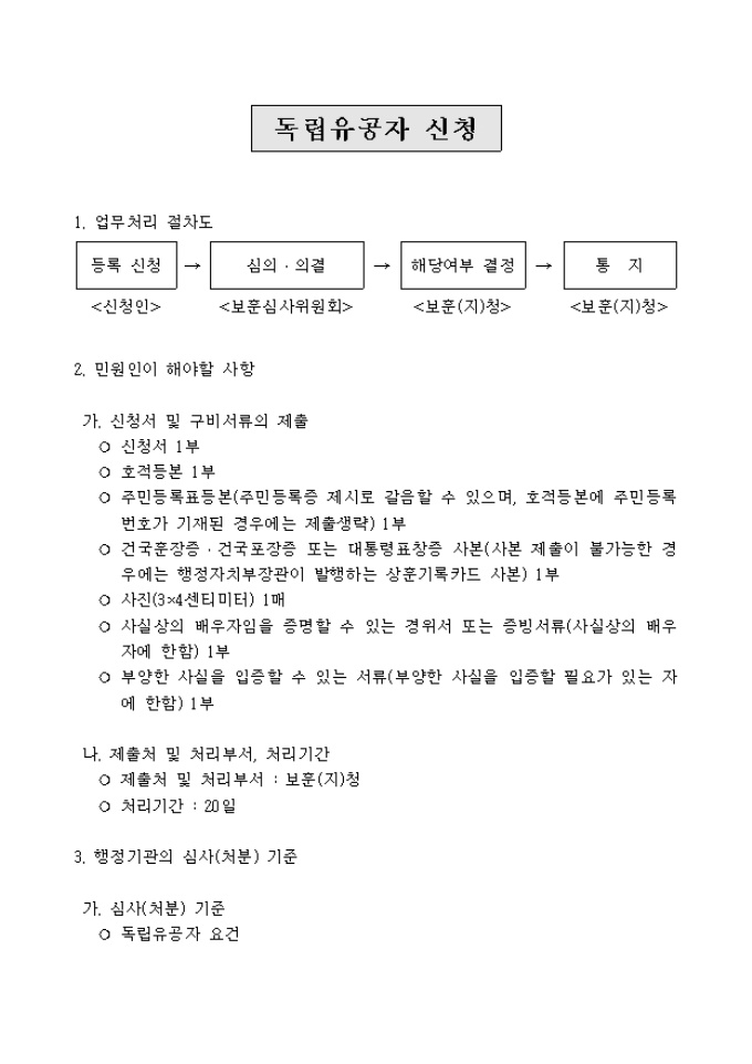 독립유공자등록 신청안내에 대한 절차 및 내용을 보실 수 있습니다.