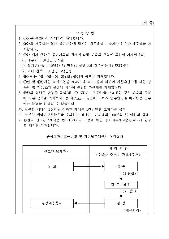 상속세및증여세법 제68조 및 동법 시행령 제64조제1항의 규정에 의한 증여세과세표준신고 및 자진납부계산서입니다.