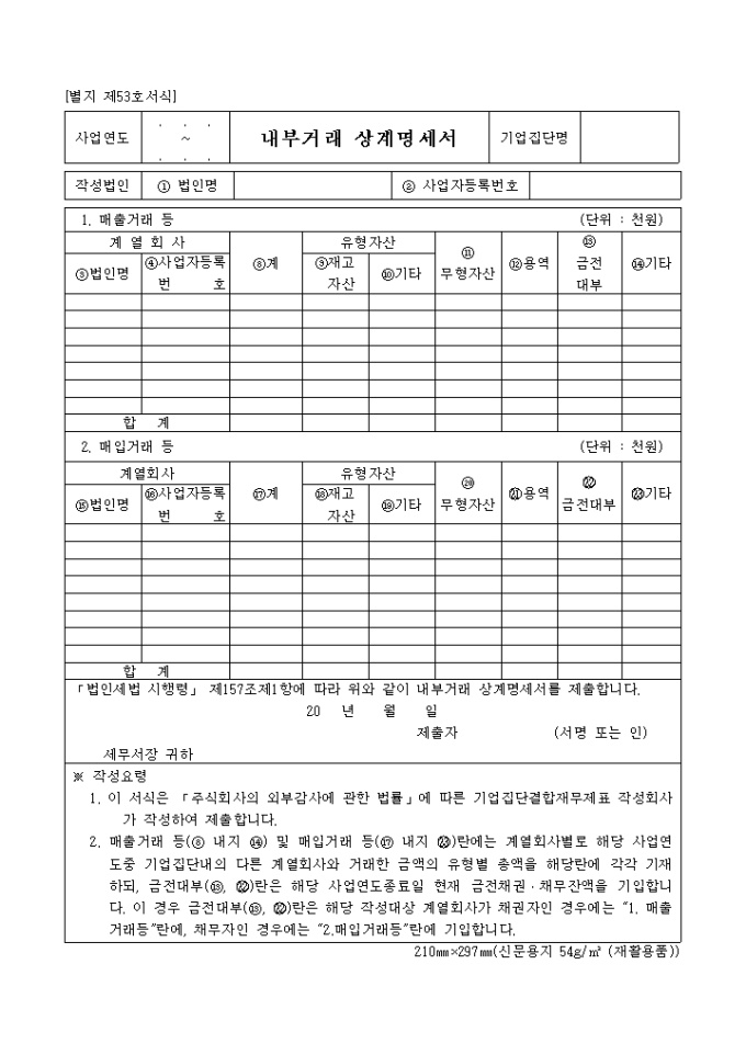 내부거래상계명세서(법인세_별지 제53호)(06.03.14.개정)
