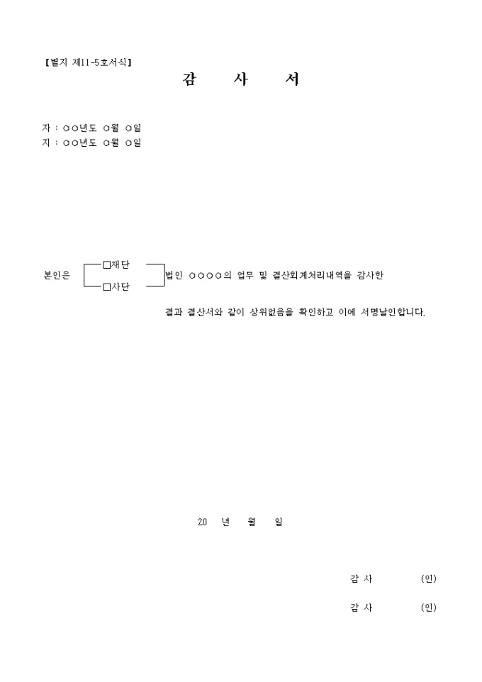 감사서(사업 계획 및 실적서식)