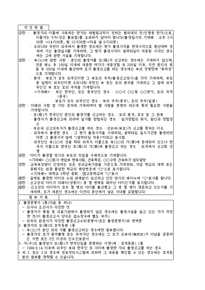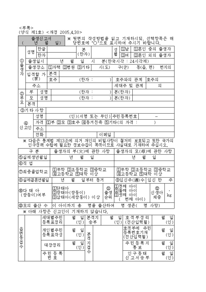 9,000원/월호적법에 의거한 양식 제1호 출생신고서로 개정 2005.4.30 서식입니다.