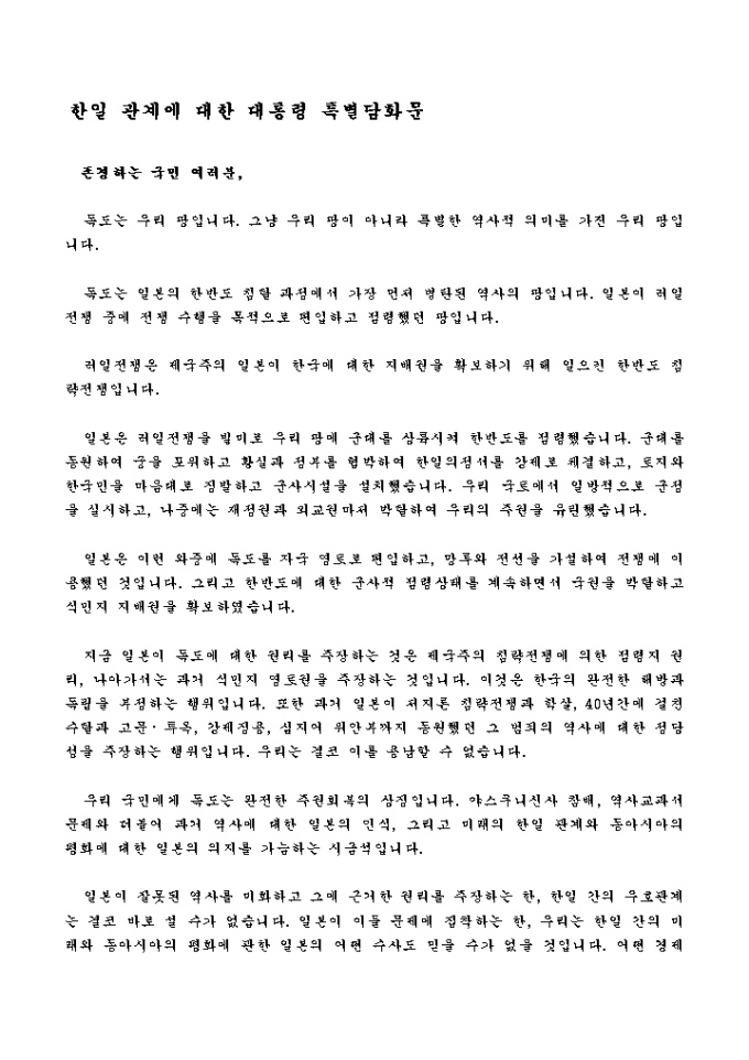 9,000원/월담화문 (한일 관계에 대한 대통령 특별담화문_독도는우리땅)